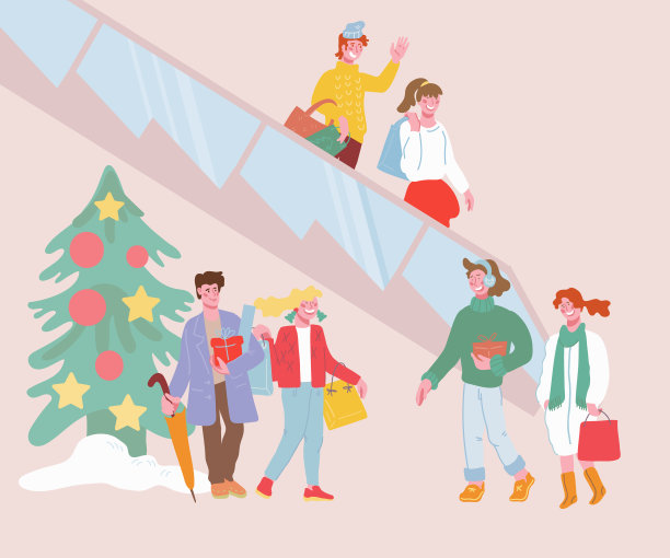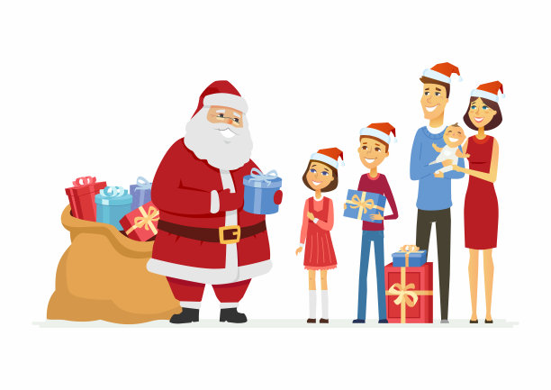 小女孩 圣诞礼物素材插画